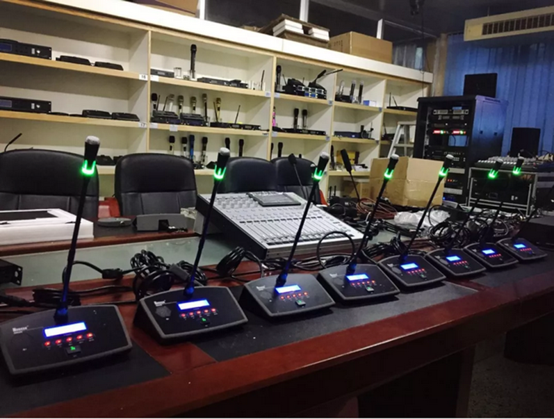 ?討論發(fā)言:可實現(xiàn)主席優(yōu)先發(fā)言權,可以隨時中斷代表發(fā)言;可實現(xiàn)當打開話筒單元數(shù)達到設定最多話筒單元數(shù)時,下一話筒打開時,系統(tǒng)將自動關閉最先打開的代表話筒單元;可實現(xiàn)限定發(fā)言總人數(shù),當話筒打開超出設定范圍時,其它話筒均不能打開。